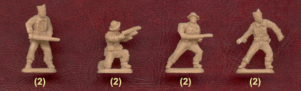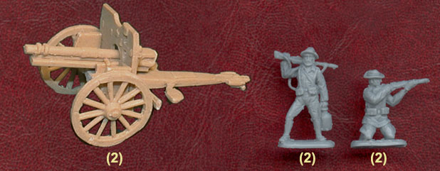 The sculpting is not of good quality compared to the best being made today but it is not bad either, and while it is a bit rough all the necessary detail is there and the proportions are OK too. The light brown figures are made in the less robust plastic material that all recent BUM and German figures use, but the grey figures are in a traditional grade of plastic and benefit from a cleaner finish as a result. Neither type of figure has much in the way of flash, and the parts for the gun are quite well done and go together easily.
