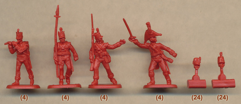 Of interest to converters is the inclusion of a large number of spare heads. Half are wearing the light infantry shako and half the later 'Belgic' shako, so for those with the patience and skill this set has more possibilities. However whichever head they wear these are excellent figures which neatly fill a surprisingly long-standing hole in Napoleonic infantry sets and are highly recommended.