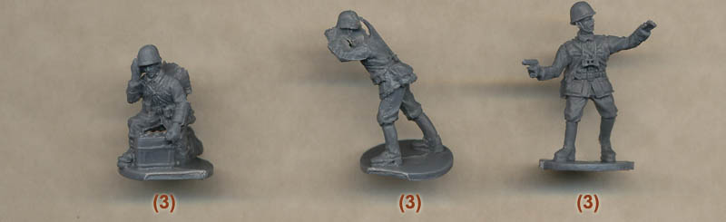 The troops all have the correct infantry uniform, including the anklets and short boots, with the anti-tank gunner and the radio man carrying full kit. Everyone except the NCO (strangely) has a gas mask bag, and most have the standard haversack too, so there are no accuracy issues with the uniform.