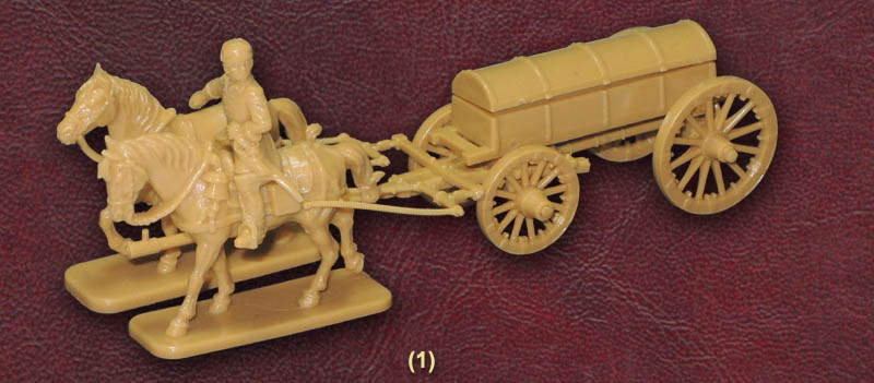We will consider the limber and wagon in the bottom two rows together because there is some interchange ability here. On decent roads a 3-pdr gun could be pulled by just two horses, but for the larger guns, or when the going was difficult (as it so often was), four or more would be necessary. Equally wagons would have more horses the larger they were, or if the circumstances demanded it and the teams were available. Both the limber and wagon in this set come with a single pair, plus one second pair which can be hitched to either, as we have shown in our picture of the limber. Really the team of four would be needed for the 6-pdrs, but the size of the wagon suggests that too would need at least four, so while the choice of team size is with the customer there would ideally be enough horses for two teams of four. Having said that the limber, wagon and teams are all superb. The limber is of standard design and perfectly done, while the wagon matches extant examples of Swedish ammunition wagons in design and again is faithfully reproduced here. The wagon has a removable lid which reveals the ammunition laid out inside, and with everything being virtually snap-together the wheels actually rotate and the wagon pivots about the front axis as no glue is required. As we have said, four or even six horses would be preferable for a wagon of this size, but otherwise we couldn’t wish for more.