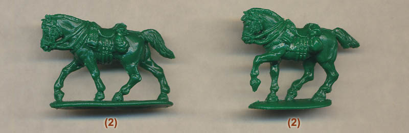 There is more data available on the horses, from which we can confirm that these look to be pretty accurate. The saddles correctly have the triple girths, and have a round valise at the back. There are no shabraques as these were reserved for parades. While the animals are not brilliantly done they do at least all conform to the natural manner in which any horse moves, so represent a quite decent range of plausible poses.