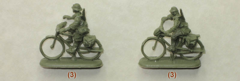 Perhaps the weakness of this set is that it is made in quite a soft and malleable plastic, yet requires a good deal of assembly. Many of the men’s arms are separate, as are the handlebars of the bikes, and we found it quite a challenge to put everything together such that it all matched up correctly. It can be done, but the soft plastic makes it a difficult task. The general sculpting is pretty good although the detail is not particularly sharp, but the proportions are fine and there is no flash.