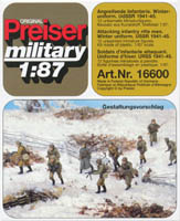 One of the many reasons for the ultimate failure of the German invasion of the Soviet Union in 1941 was the severe winter weather they encountered. Initially the Red Army had also proved unprepared for the winter, despite it being their own climate, but they recovered much quicker than the stretched Germans, and in time vast numbers of Soviet infantry were wearing warm, practical uniforms that allowed them to operate in almost any temperature. Several plastic sets have now depicted such men, and this one from Preiser is part of their contribution to that popular subject.