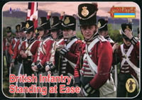 With so many general purpose sets having already been produced, a more recent trend is to create sets that are focused on one activity, and many of these have come from the Strelets factory lately. Napoleonic era British infantry have been quite well represented in the past, but this set concentrates solely on men clearly not in battle nor on parade, but in fairly relaxed mood. The set title speaks of 'at ease', which is a part of the normal drill, but here it means men that are not performing any drill or manoeuvre. The main poses, which are provided with four copies of each, are of men resting their musket on the ground in various ways, and in one case apparently leaning on it, which is unlikely to please his superiors. All seem perfectly natural, and so as a result are valid poses. Some like the first and last man in our top row would not seem to be formed up as they are taking much space to their side, but since these could just as well be in camp or some other environment there is nothing much wrong with any of these figures.
