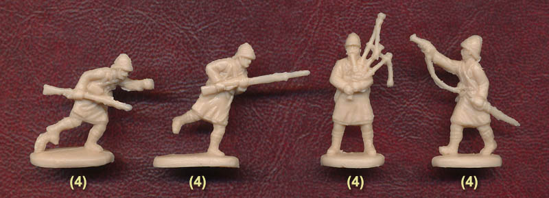 Many years ago Strelets did a similar set of Highlanders to this (although not specifically for the Second Boer War), but this one is enormously better. The sculpting is very good indeed, with all the equipment and finer details being exactly the size they should be. The usual measures are the faces and hands, and here they are extremely good throughout, but so too are other smaller details like the puggaree round the helmet and the pipes of the piper. Although there is little flash, most of the seams have a slightly rough feel to them, though this would be fairly easy to smooth off. A couple of places (the left elbow of the two firing poses for some reason) has rather more flash. But overall the level is low and does not impact on the good sculpting, which is always good to report.