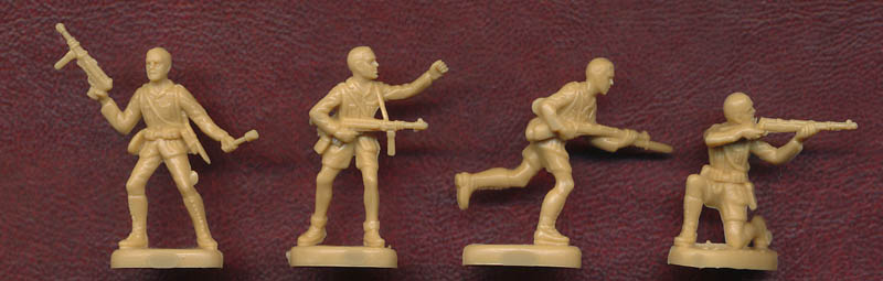 Only two of the men are using rifles, with the others using machine guns, pistols, hand grenades and even a knife. Since most men did not have pistols, we felt three such poses was excessive. However the weapons are nicely detailed, even if not always entirely accurate.