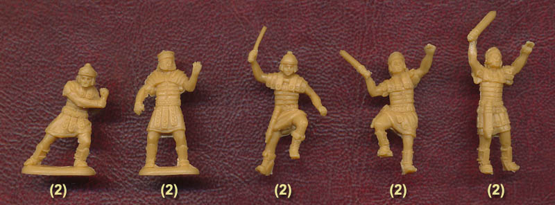 This was a great idea. With companies making siege engines there is an obvious need for figures to use them, just as it is pointless making artillery without crews to man them or wagons with no one to drive them. The poses are well chosen and the sculpting is of a reasonable standard. However the sculptor seems to have got his historical information from watching Ben-Hur, and has ruined what would have been an extremely valuable set. Orion really must try much harder.