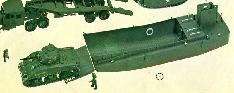 Although the popular image of landing craft such as those used on D-Day has them full of troops, the LCM ('Landing Craft Mechanized' or 'Landing Craft Mechanical') were designed primarily to land vehicles like the Sherman tank included in this set. Airfix also included the above three crewmen, who all wear heavy duffle coats and steel helmets. The man in the middle is intended for the armoured wheelhouse, where he is controlling the craft, while the other two are presumably supervising the loading or unloading. As poses go these are quite generic and so usable away from the LCM.